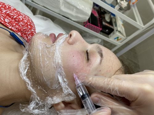 - Разметка и определение точек инъекций, введение врачом-косметологом Мезоксантина.